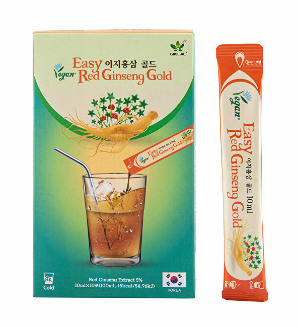 Ženšenový extrakt EASY GOLD je 100% extrakt z pravého korejského červeného ženšenu s vysokým obsahem aktivních látek ve formě nápoje balený v jednotlivých sáčcích pro snadné užívání. Vyzkoušejte nejpraktičtější způsob užívání ženšenového extraktu.