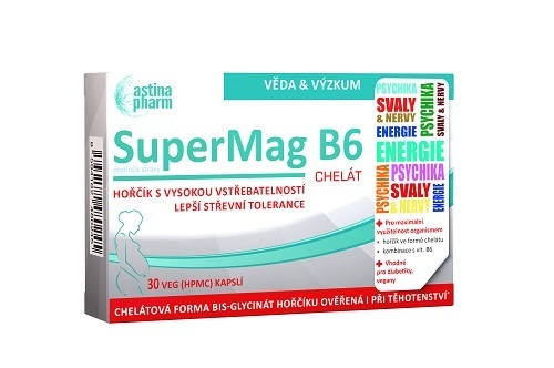 SuperMag B6 chelát je vysoce vstřebatelná forma hořčíku složená z kationtu hořčíku a dvou aniontů aminokyseliny glycinu. Tím vzniká neutrální komplex (chelát), jenž se snadno vstřebává a v těle se pak hořčík uvolňuje postupně. Tato forma hořčíku se vyznačuje výbornou střevní tolerancí. číst celé