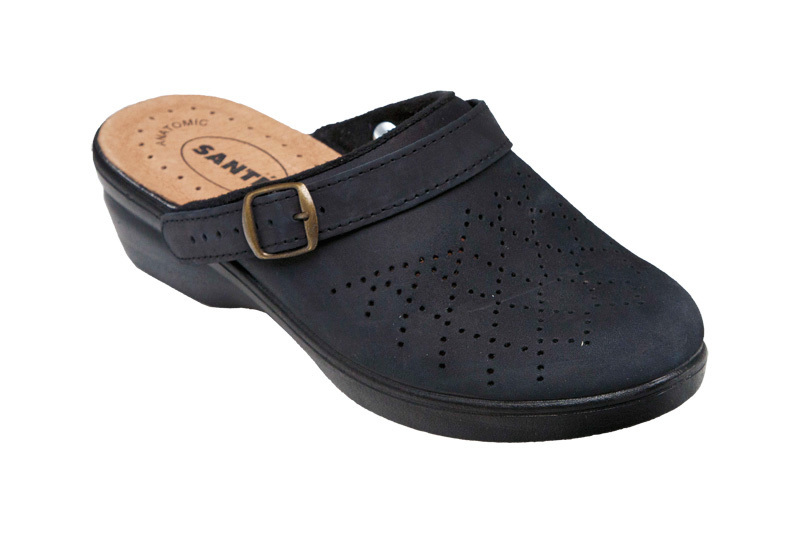 Zdravotní obuv - dámské pantofle,barva: černá,podešev: černá,stélka: anatomicky tvarovaná, kožená,materiál: kůže,zapínání na přezku,flexibilní pásek umožňuje nosit boty jako pantofle nebo ho umístit za patu.