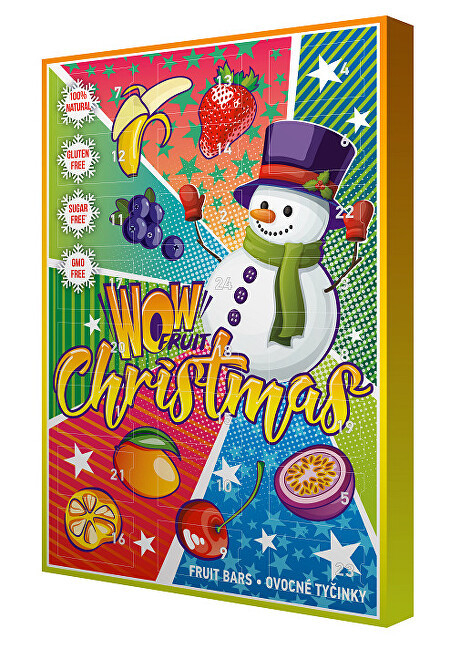 Adventní kalendář WOW je plný ovoce, který obsahuje 23 ks malých ovocných tyčinek (10g) a jednu Vánoční tyčinku 20g v podobě překvapení.