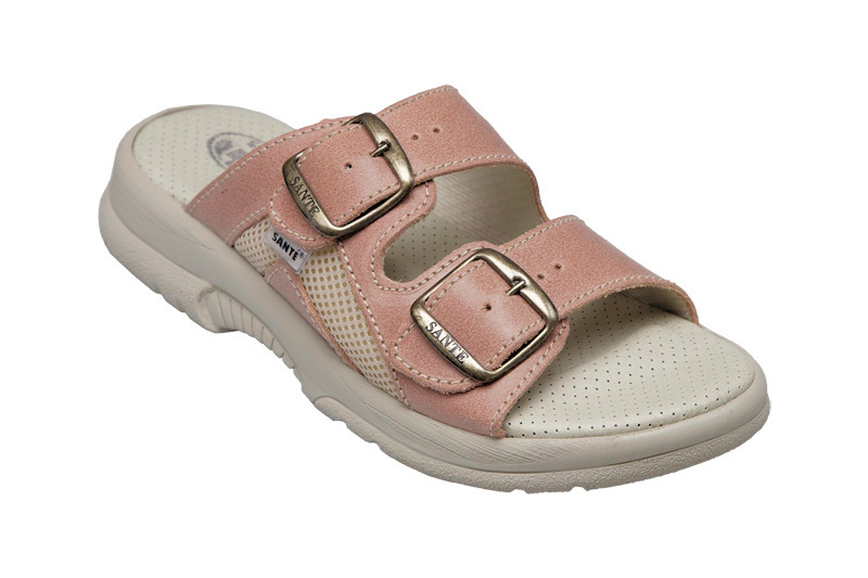 Zdravotní obuv - dámský pantofel,Barva: lososová,Podešev: světlá perforovaná,Stélka: anatomicky tvarovaná,Materiál: kůže,zdravotní certifikovaná obuv.