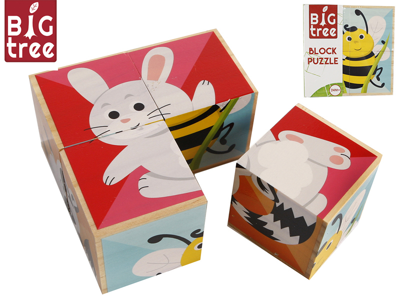 Kostky dřevěné 4ks zvířátka 10x10x5cm 24m+ ve fólii