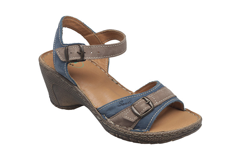 Zdravotní obuv - dámský sandál,Barva: modrá,Podešev: hnědá,Stélka: anatomicky tvarovaná,Materiál: kůže,zapínání na přezku,klínek cca 6,5 cm. číst celé