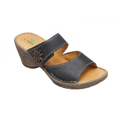 Zdravotní obuv - dámský pantofel,Barva: černá,Podešev: hnědá,Stélka: anatomicky tvarovaná,Materiál: kůže,zapínání na suchý zip,klínek cca 6,5 cm. číst celé