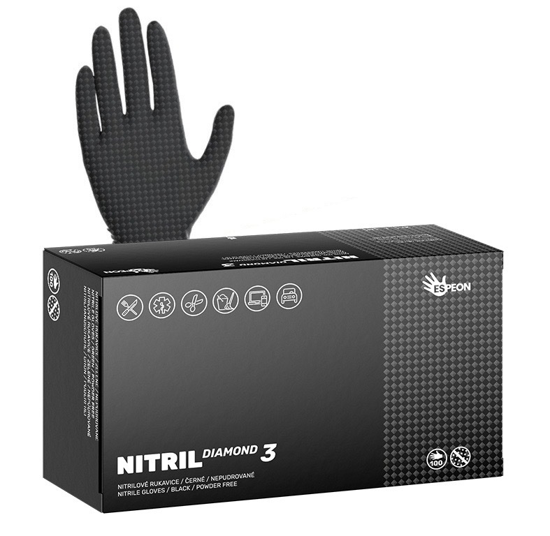 Nitrilové rukavice NITRIL DIAMOND3 100 ks, nepudrované, černé, 8.0 g Velikost: XXL