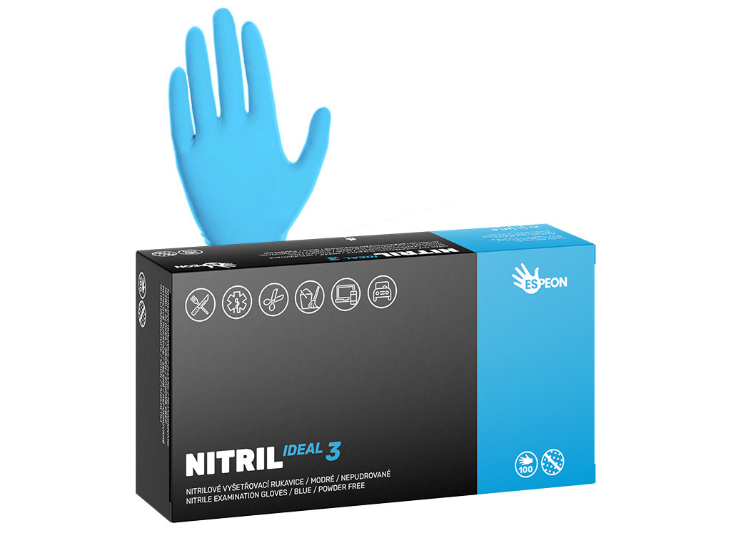 Nitrilové rukavice NITRIL IDEAL3 100 ks, nepudrované, modré, 3.5 g Velikost: XL