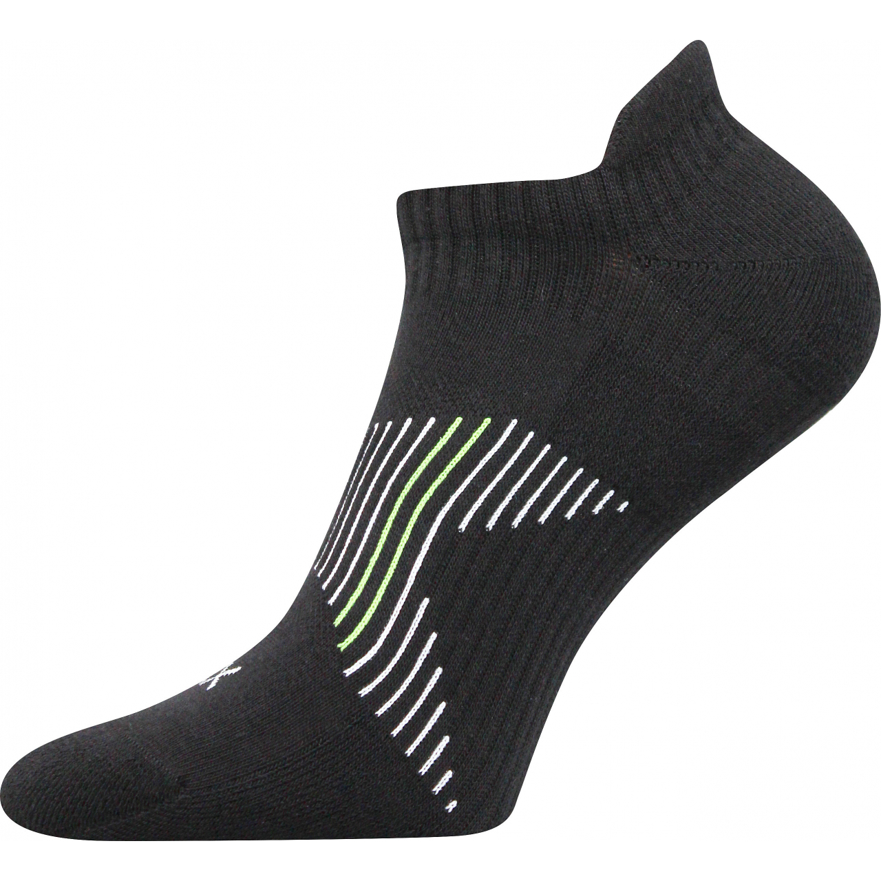 Unisex sportovní ponožky VoXX® PATRIOT A jsou univerzální nízké ponožky v nízké výšce ke kotníku. Sportovní ponožky mají rozsáhlé využití, hodí se na běh, tenis, fitness, halové a indoorové aktivity i celodenní nošení. Přírodní bavlna je příjemná na nošení a dobře odvádí pot, řetízkovaná špice nikde netlačí, elastická zóna na nártu zabraňuje přetáčení ponožek v obuvi, zesílené polstrované zóny na špici, patě a chodidle tlumí nárazy a zajistí tak komfort při nošení, ať už v nich podnikáte cokoliv. Citlivou patu ochrání před puchýři a otlaky speciální zvýšený lem. Ponožky jsou v teplotní třídě A od +10°C do + 35°C.