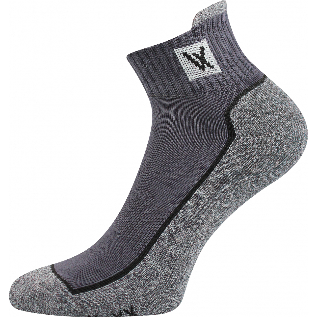 Dámské a pánské krátké sportovní ponožky VoXX® NESTY 01 jsou univerzální ponožky v kratší výšce ke kotníku. Sportovní ponožky mají rozsáhlé využití, hodí se na běh, tenis, fitness, halové a indoorové aktivity i celodenní nošení. Přírodní bavlna je příjemná na nošení a dobře odvádí pot, elastická zóna na nártu zabraňuje přetáčení ponožek v obuvi, zesílené polstrované chodidlo tlumí nárazy a zajistí tak komfort při nošení, ať už v nich podnikáte cokoliv. Citlivou patu ochrání přes otlaky a puchýři speciální zvýšený lem. Ponožky jsou v teplotní třídě A od +10°C do + 35°C.