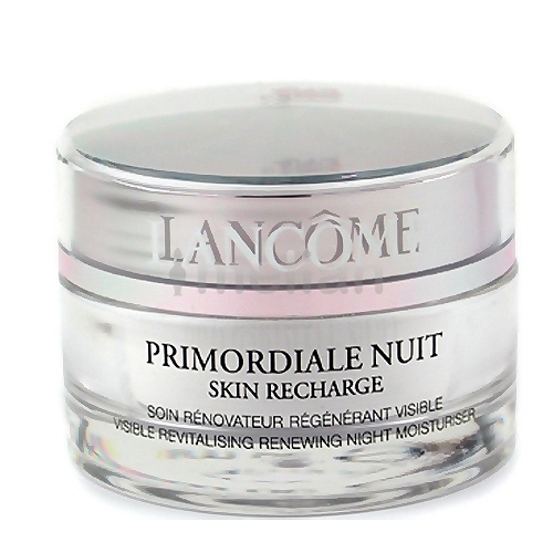 Noční obnovující krém **Lancome Primordiale Skin Recharge Nuit**. Krém Lancome Primordiale Skin Recharge Nuit obnovuje pleť, dodává ji jas a energii. Intenzivně obnovuje povrch pleti, redukuje výskyt vrásek a jemných linek. Noční krém obohacený o vitaminy B8 a A, přírodní výtažky z pšenice. Chrání pleť před volnými radikály a napomáhá k přirozené obnově buněk. Zanechává pleť svěží, mladistvou a vitální. **Použití**: Aplikujte večer na čistou pleť.