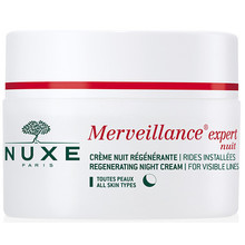 Noční krém **Nuxe Merveillance Regenerating Night Cream**. Pleťový krém Nuxe Merveillance Visible Lines Night Cream hloubkově regeneruje pleť během noci. Bohaté složení redukuje výskyt vrásek a jemných linek. Odhaluje tak svěží a mladistvou pleť. Den po dni budou vrásky jemnější a méně viditelné. Bojujte proti známkám stárnutí pleti účinně. Dopřejte své pleti hloubkovou péči a regeneraci. Vhodné pro všechny typy pleti. **Účinky**: · bojuje proti známkám stárnutí pokožky · vyhlazuje pleť · chrání pokožku **Použití**: Aplikujte večer na čistou pleť.
