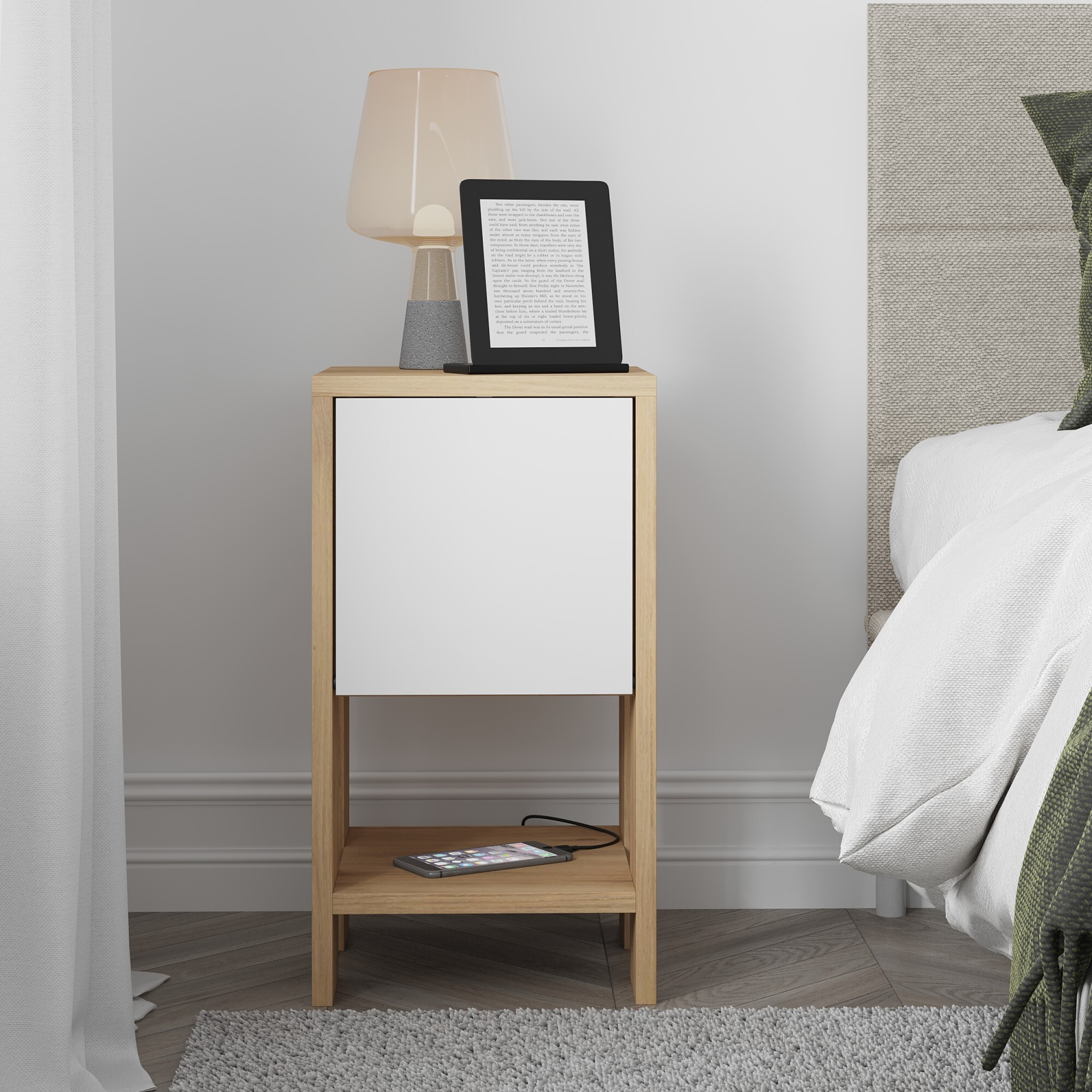 Noční stolek Houseland EMA dub safírový/bílý