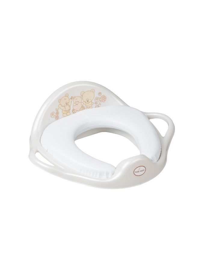 Dětské barevné sedátko na WC měkké s obrázkem medvídků. Vyrobené z kvalitního plastového materiálu. Je lehce omývatelné a díky svému tvaru zaručuje Vašemu dítěti bezpečí a pohodlí. Zvýšená přední část zabraňuje úniku moči. Má plastové úchyty a sedací část je měkká a potažená PVC. Ideální pro děti, které se učí samy chodit na záchod. Sedí ke většině záchodových prkének. Rozměry: cca 38x32 cm. Vhodné pro děti od 18 m, do 25 kg.