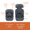 pásy se snadno přizpůsobí růstu dítěte a zajišťují správnou polohu pásu v každé fázi.Sedačka je vybavena pohodlným polstrováním a boční ochranou, která poskytuje komfort a bezpečí i na delších cestách. Snadno odnímatelný a pratelný potah
