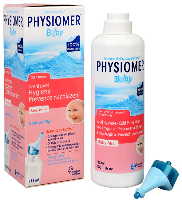 Physiomer Baby je 100% přírodní izotonický nosní sprej, který čistí dětský nosík, pomáhá zprůchodnit nosní cesty a přináší komfort a pohodu při spaní a krmení.