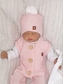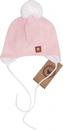 Z&Z Dvouvrstvá pletená čepice na zavazování s bambulí, růžová, vel. 68; 68 (3-6m)