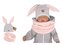 Z&Z Kojenecká bavlněná čepička Zajíček s nákrčníkem, šedá/růžová, vel. 68/74; 68/74 (6-9m)