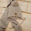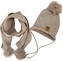 Dvouvrstvá pletená čepička na zavazování + šál s bambulky, béžový melírek; 56/62 (0-3m)
