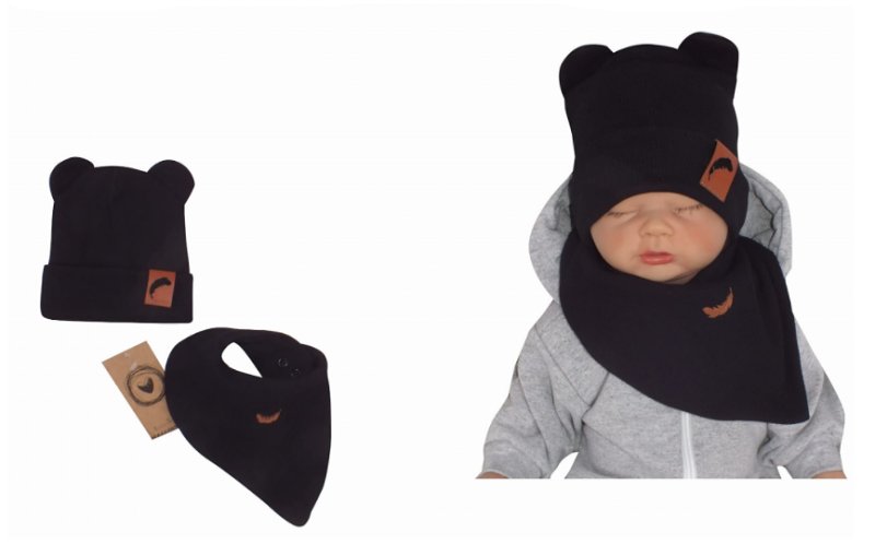 Z&Z Dvouvrstvá žebrovaná čepička s oušky + šátek, černá, 92/98; 92/98 (18-36m)