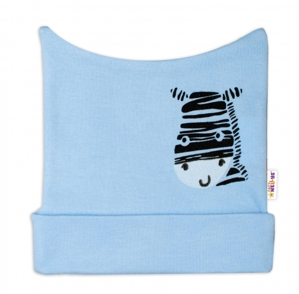 Díky designu s motivem Zebra v modré barvě se čepička stane nejen praktickým, ale i stylovým doplňkem každodenní výbavy vašeho novorozence.