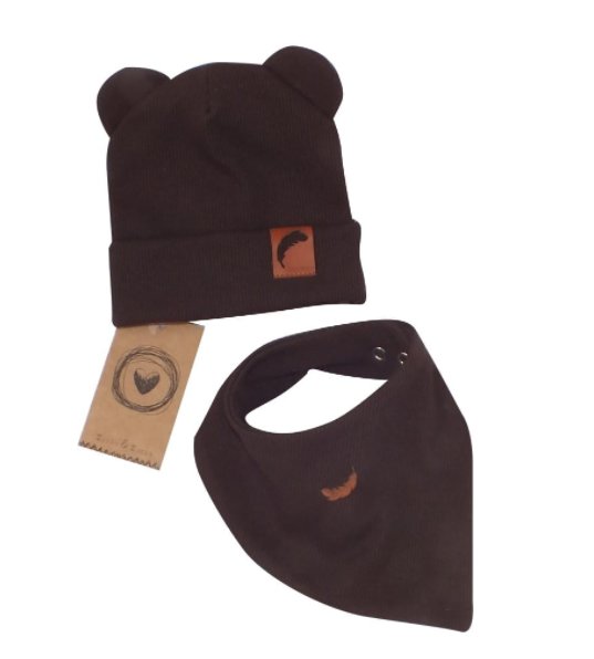Z&Z Dvouvrstvá žebrovaná čepička s oušky + šátek, čokoládová; 56/62 (0-3m)
