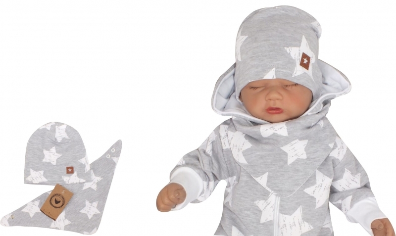 Z&Z Bavlněná čepička + šátek, Hvězdy, šedá, vel. 86
