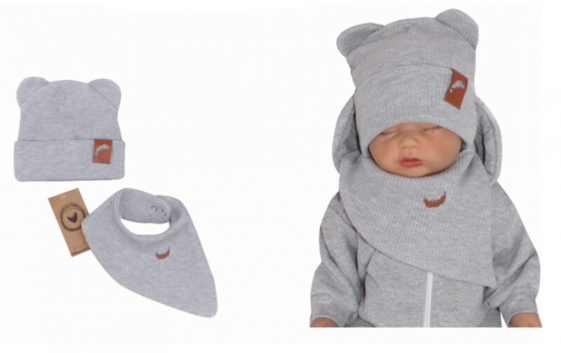 Z&Z Dvouvrstvá žebrovaná čepička s oušky + šátek, šedá, 68/74; 68/74 (6-9m)