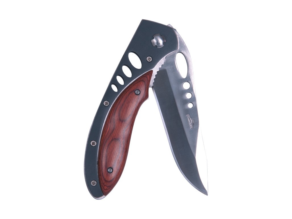 Čepel vyrobena z kvalitní oceli 420 s bezpečnostní pojistkou, dřevěná střenka. číst celé