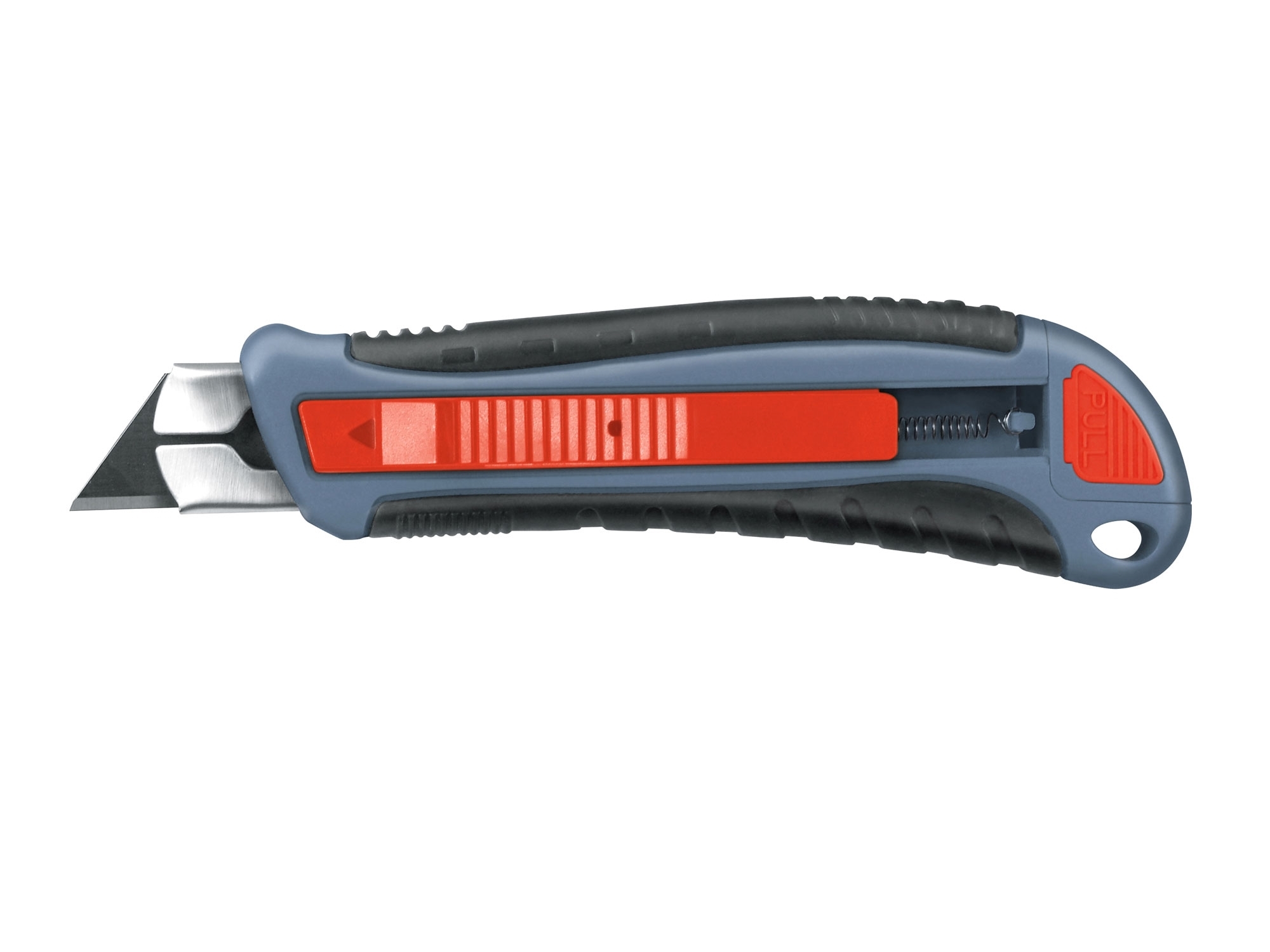 bezpečnostní pružinový mechanismus automatického zasunutí břitu po uvolnění přítlaku palce na tlačítko vysunovače