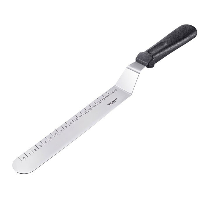 Ideální a snadný pomocník pro roztírání polev, šlehačky a podobně na dortech nebo koláčích. Ale také ho můžete použít pro rozdělení dortového korpusu a další.