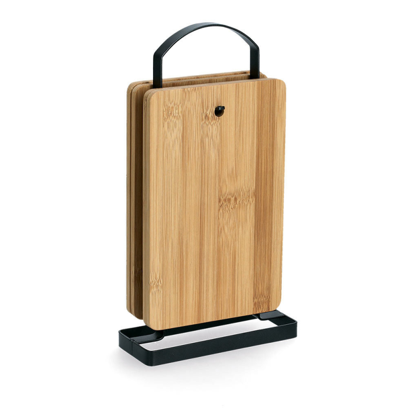 Elegantní a praktická sada prkének ZELLER s kvalitním černým kovovým stojanem a čtyřmi bambusovými deskami přináší do kuchyně nejen styl, ale i funkčnost. Prkénka jsou vyrobena z vysoce odolného bambusu, který je šetrný k nožům a snadno se čistí. Kompaktní stojan umožňuje přehledné a prostorově úsporné uložení. Ideální pro každodenní krájení, servírování i stylové stolování.
