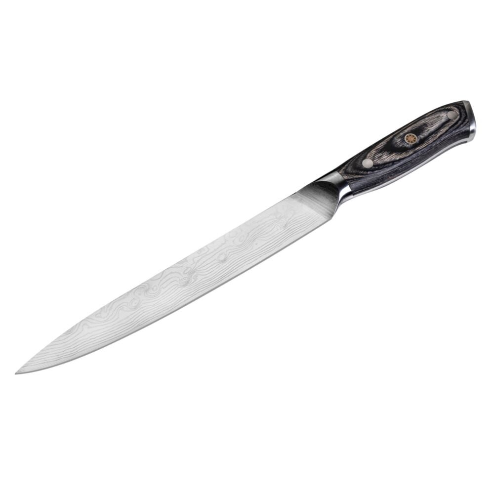 Antibakteriální povrchLaserem gravírovaná čepel stylizovaná do damaškové oceliErgonomická dřevěná rukojeť PakkaSnadno se čistíStylový designMateriál: Nerezová ocelMateriál rukojeti: BakelitBarva rukojeti: Černá