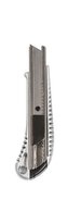 Celokovový masivní odlamovací nůž v robusním kovovém provedení. Uzavíratelá pojistka, protiskluzový povrch, zásobník na náhradní nože, ouško na zavěšení, kovová vodící lišta. Šířka čepele 18mm. Délka 15cm. Baleno na blistru. číst celé