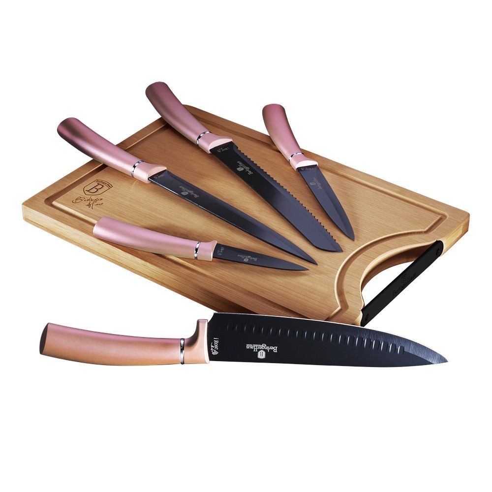 Sada nožů s nepřilnavým povrchem + prkénko 6 ks I-Rose Edition
