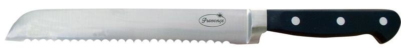 Nůž "profi" na chleba- kovaný s čepelí 20, 5 cm z uhlíkové oceli a rukojeť z tvrdého černého plastu. Snadno omyvatelný a vhodný do myčky na nádobí. Rozměry - 33, 5 x 3 cm.Kované nože vynikají tvrdostí čepele, díky které vydrží velmi dlouho ostré.