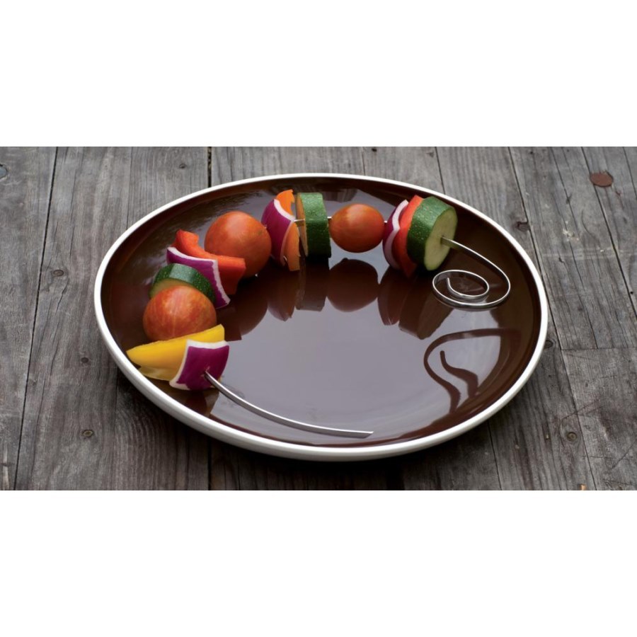 Nerezové jehly zahnutého tvaru na ražničí, špízy apod., výborně padnou na talíř.