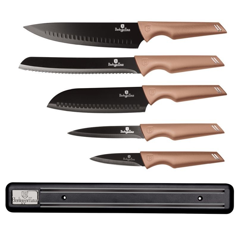 Sada nožů s nepřilnavým povrchem 6 ks Rose Gold Edition s magnetickým držákem