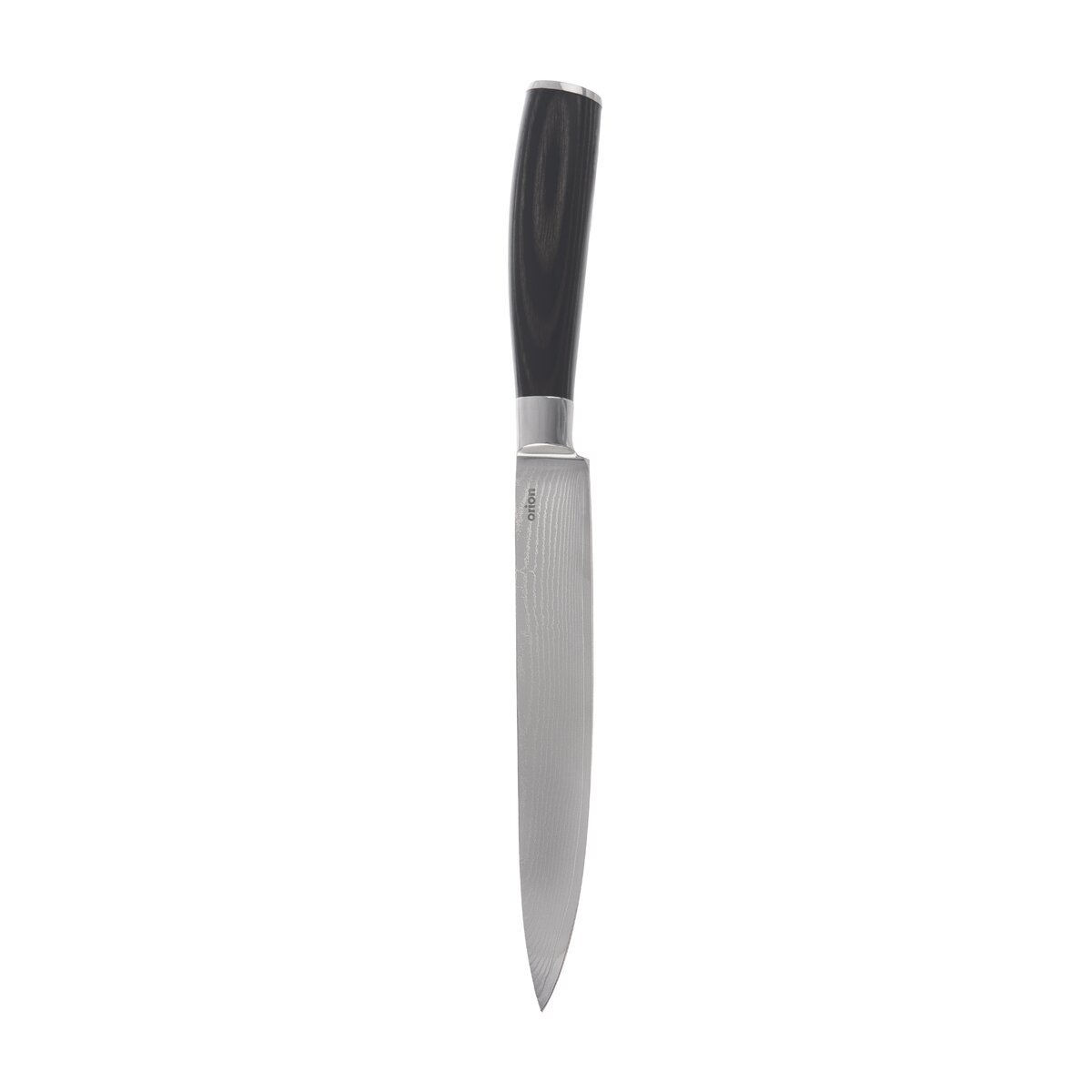 Kuchyňský nůž z damaškové oceli nejen pro profesionální využití se hodí pro amatérské kuchaře, domácí gurmány i labužníky. Univerzální využití v kuchyni. Čepel je vyrobena z kvalitní 67vrstvé damaškové oceli vzniklé ze dvou různých ocelí, které jsou zahříváním spojeny v jeden celek. Damašková ocel je tvrdá, odolná vůči opotřebení, vysoce stabilní a má dlouhou životnost. Krájení je přesné a dokonalé. V případě nutnosti nabroušení ostří použijte kuchyňský brousek, ocílku. Rukojeť nože je vyrobena z pakka dřeva (pakkawood) - tlakově zpracovaného kompozitu dřeva a pryskyřice, který je stabilní, tepelně a vlhkostně odolný i vůči mechanickému opotřebení. Materiál: damašková ocel (tvrdost 60 HRC - podle Rockwella), rukojeť - pakka dřevo. Rozměry: celková délka nože 26,5 cm, čepel 15,5 cm, ostří 15,5 cm. Není vhodný do myčky. Po použití nůž ručně umyjte teplou vodou s mycím prostředkem a dobře vysušte. V naší nabídce naleznete různé tvary nožů z damaškové oceli.