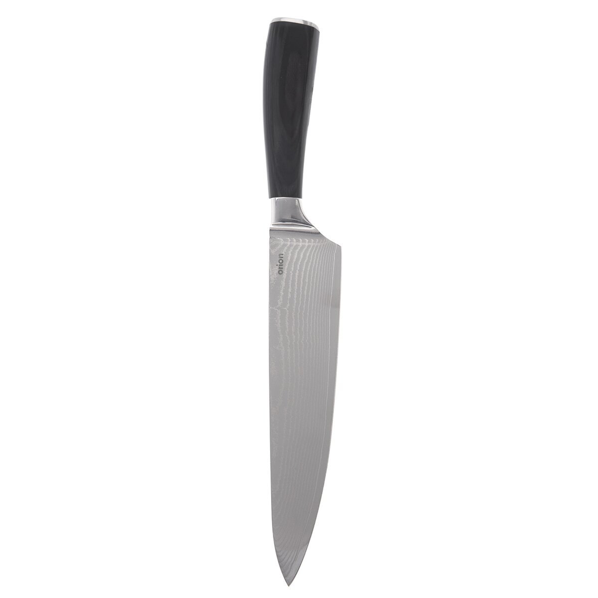 Kuchyňský nůž z damaškové oceli nejen pro profesionální využití se hodí pro amatérské kuchaře, domácí gurmány i labužníky. Univerzální využití v kuchyni. Čepel je vyrobena z kvalitní 67vrstvé damaškové oceli vzniklé ze dvou různých ocelí, které jsou zahříváním spojeny v jeden celek. Damašková ocel je tvrdá, odolná vůči opotřebení, vysoce stabilní a má dlouhou životnost. Krájení je přesné a dokonalé. V případě nutnosti nabroušení ostří použijte kuchyňský brousek, ocílku. Rukojeť nože je vyrobena z pakka dřeva (pakkawood) - tlakově zpracovaného kompozitu dřeva a pryskyřice, který je stabilní, tepelně a vlhkostně odolný i vůči mechanickému opotřebení. Materiál: damašková ocel (tvrdost 60 HRC - podle Rockwella), rukojeť - pakka dřevo. Rozměry: celková délka nože 33,5 cm, čepel 20,5 cm, ostří 20 cm. Není vhodný do myčky. Po použití nůž ručně umyjte teplou vodou s mycím prostředkem a dobře vysušte. V naší nabídce naleznete různé tvary nožů z damaškové oceli.