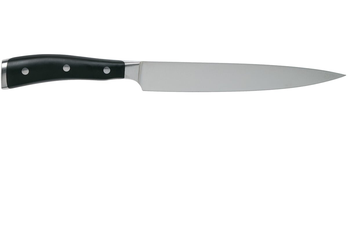 Nôž na šunku WUSTHOF Classic Ikon so svojou dĺžkou 20 cm je univerzálny pomocník v kuchyni, zvládne naozaj všetko. Napríklad lúpanie a krájanie ovocia a zeleniny, naporcovať mäso, nakrájať šunku a iné úlohy. Jeho rozmery z neho robia nenahraditeľný kúsok vo Vašej kuchyni.