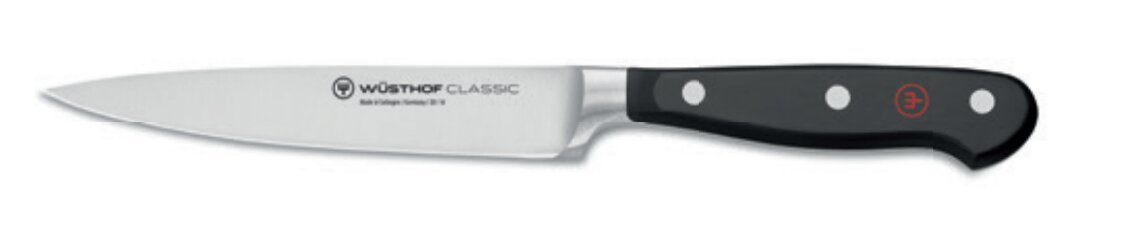 Nôž na šunku Wüsthof Classic1030100714 je vhodný na krájanie šunky, plátov mäsa - surového, pečeného i vareného. Má čepeľ s hladkou hranou s dĺžkou 14 cm z ocele X50Cr15MoV. Rukoväť má celokovové jadro a je z čierneho robustného plastu.