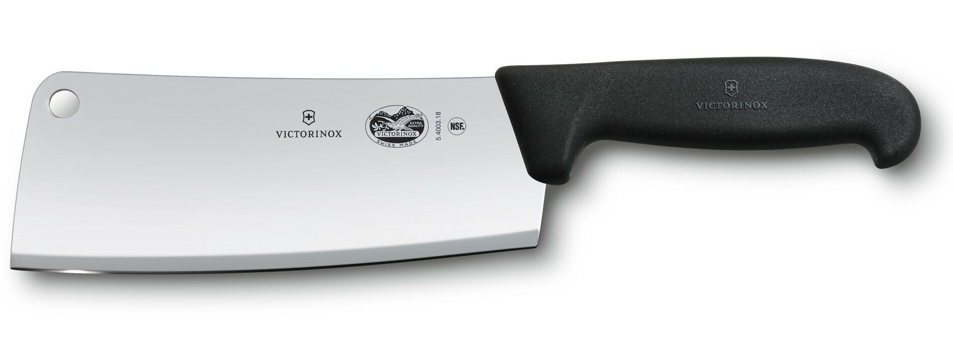 So širokou robustnou čepeľou s dĺžkou 18 cm z nehrdzavejúcej ocele, vo vrchnej časti je otvor. Rukoväť je z čierneho plastového materiálu Fibor, ktorý pre Victorinox znamenal prielom. Možno ju sterilizovať do 150 °C a zodpovedá požiadavkám smernice (ES) 1935/2004.