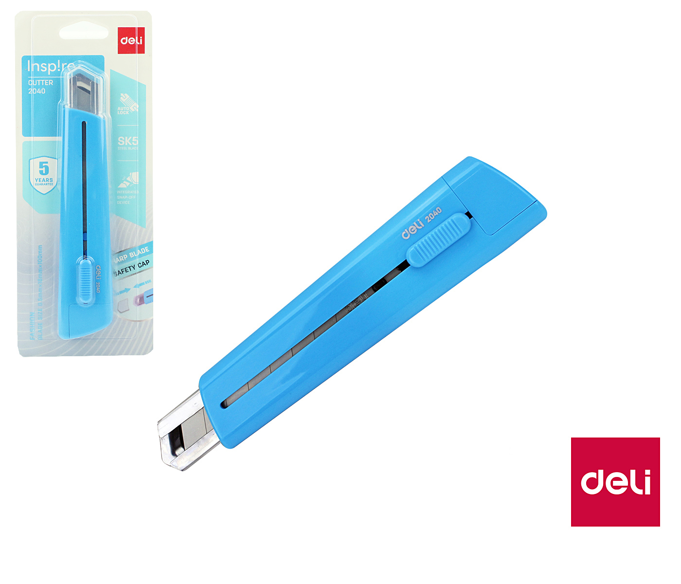 Nůž 169mm odlamovací DELI E2040 modrý