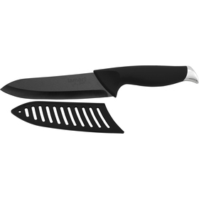 Nůž kuchařský - černá keramikaČepel nože: 15 cmDélka nože: 28 cmVelmi ostrá keramická čepel a ergonomická měkčená rukojeť pro maximální účinek a bezpečné užitíNeovlivňuje vůni a chuť krájených potravinZdravotně nezávadné krájení potravinPo použití výrobek omyjte a osušteVhodné také do myčky na...