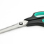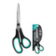 Nůžky s asymetrickými rukojeťmi z PVC v kombinaci so silikonem poskytující kmfortní uchopení. Délka nůžek 20,5 cm, dodávané v černo-červené barevné kombinaci, na blistrui. Rozměr: 210x75 mm, 85 mm čepel.