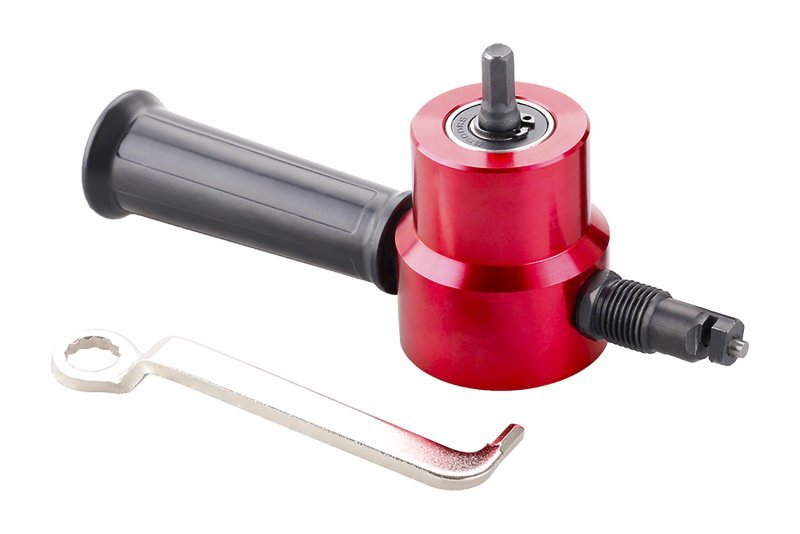 Tento nástavec nabízí univerzální upnutí na vrtačku či aku vrtačku s běžnou hlavou a stabilní šestihrannou stopku 8 mm, která zabraňuje prokluzu při práci. Díky dvoustrannému střižnému mechanismu můžete po opotřebení jedné strany jednoduše přešroubovat madlo a pokračovat v práci bez nutnosti nákupu nového nástavce. Madlo slouží k přesnému vedení nástroje, což umožňuje čisté a přesné řezy ve všech používaných materiálech.