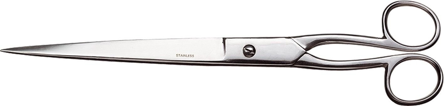 Nůžky jsou vyrobené z kvalitního celokovového materiálu, což garantuje jejich dlouhou životnost a pevnost. Díky délce 25 cm a ostří dlouhému 14,5 cm snadno zvládnou jak drobné šití, tak stříhání papíru nebo potravin v kuchyni. Obě čepele jsou tvarované do špičky a pevně spojené kovovým šroubem, což napomáhá preciznímu a snadnému střihu všemi směry.