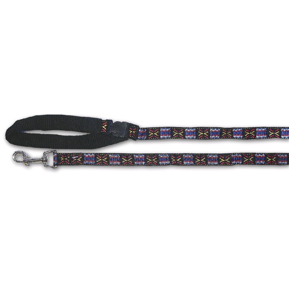 Nylonové vodítko pro psy s mexickým vzorem.Díky rukojeti na rychlozapínání můžete Vašeho psa snadno a rychle kdekoliv uvázat, nemusíte vodítko složitě zaplétat.Barevné vzory na vodítku jsou v něm přímo vetkané, nehrozí tedy žádné loupání barvy jako u těch potištěných.Praktické a pevné vodítko pro každodenní venčení.Vhodné pro střední plemena psů.Barva: černá s potiskem "mexiko"Délka vodítka: 120 cmŠířka vodítka: 2 cm