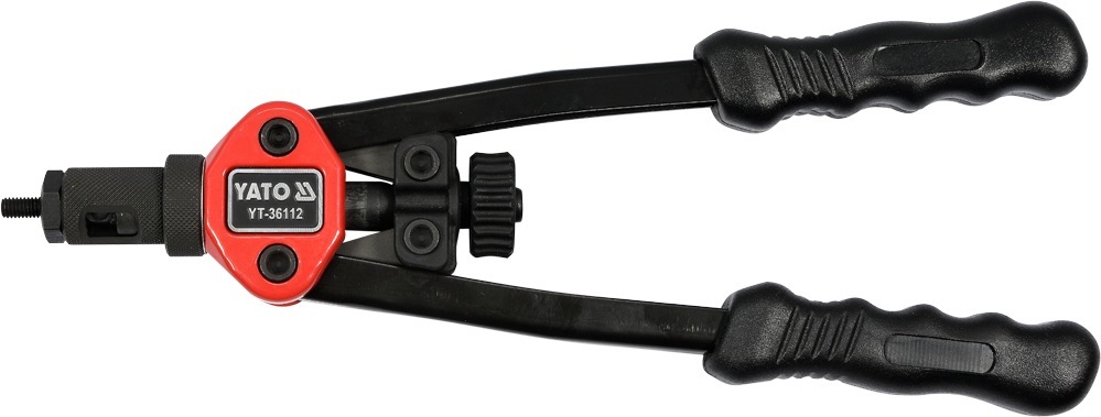 Délka kleští 300 mm, bytelné kovové tělo s gumovými rukojeťmi s precizně opracovanými hlavicemi z nástrojové CrMo oceli. Jsou určeny pro nýty M3 - M8 z nerezové oceli, nebo hliníku.