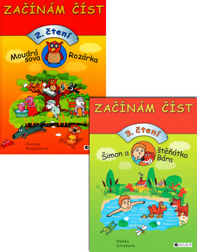 Moudrá sova Rozárka Seznamte se s novou kamarádkou, moudrou sovou Rozárkou. Zdokonalíte se ve čtení a přitom se dozvíte, proč se o někom říká, že krade jako straka nebo že má hlad jako vlk. Rozárka vám, společně s lakomým křečkem Marečkem, černou ovcí Albínou, špinavým prasátkem Láďou a dalšími kamarády, přináší poučné příběhy. Šimon a štěňátko Bára Pojďte si číst se Šimonem a jeho psí kamarádkou Bárou. Dozvíte se, jak Šimon neposedné štěňátko získal, jak se spolu učili plavat a oblíbíte si také jejich kamarády kocoura Eliáše a psa Bojara. Zdokonalujte se ve čtení s veselými příběhy doplněnými spoustou půvabných ilustrací.