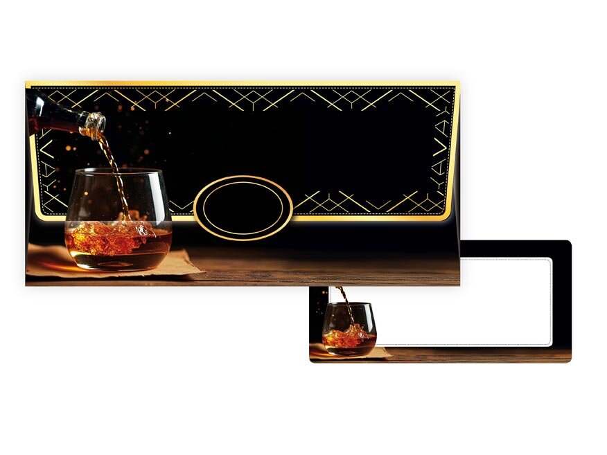 Chcete darovat peníze originálně a stylově? Tato obálka na peníze je ideální volbou pro muže k narozeninám, výročí, promoci nebo jako firemní dárek. Její luxusní design se sklenkou whisky a zlatými ornamenty působí moderně a slavnostně.
